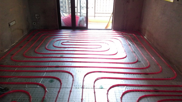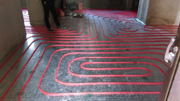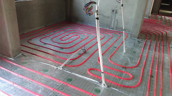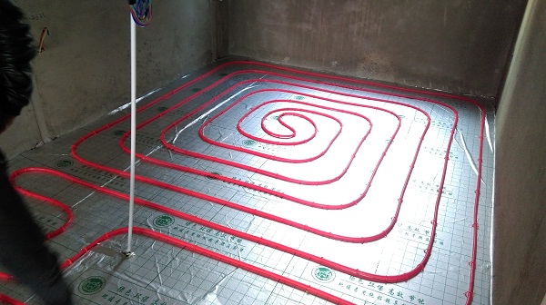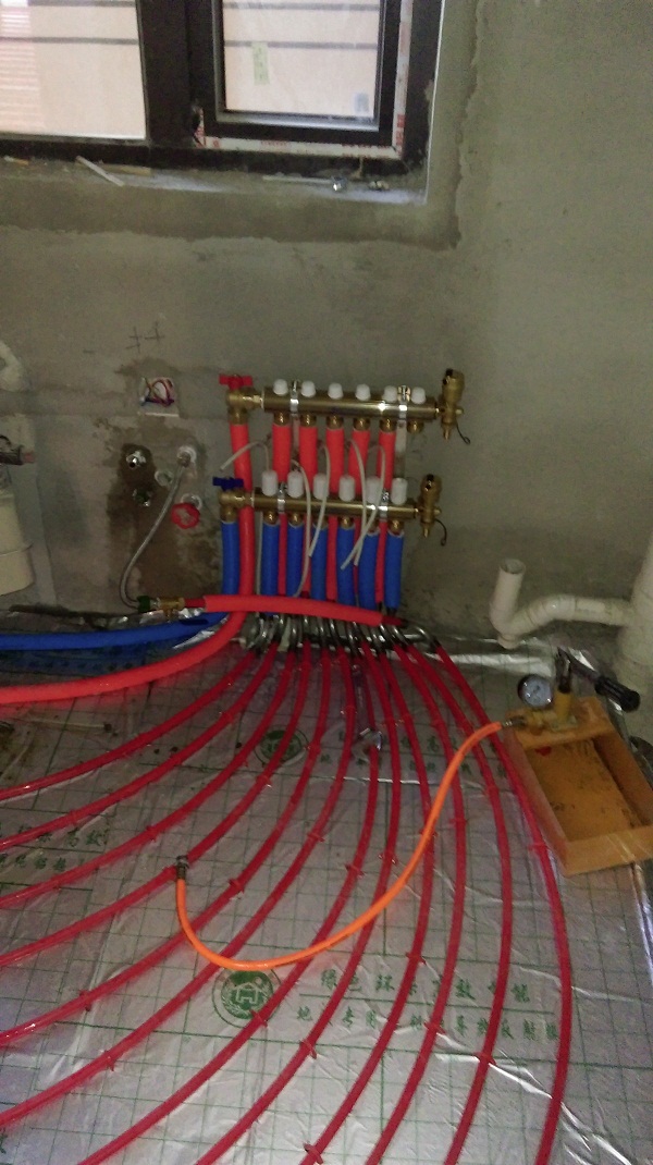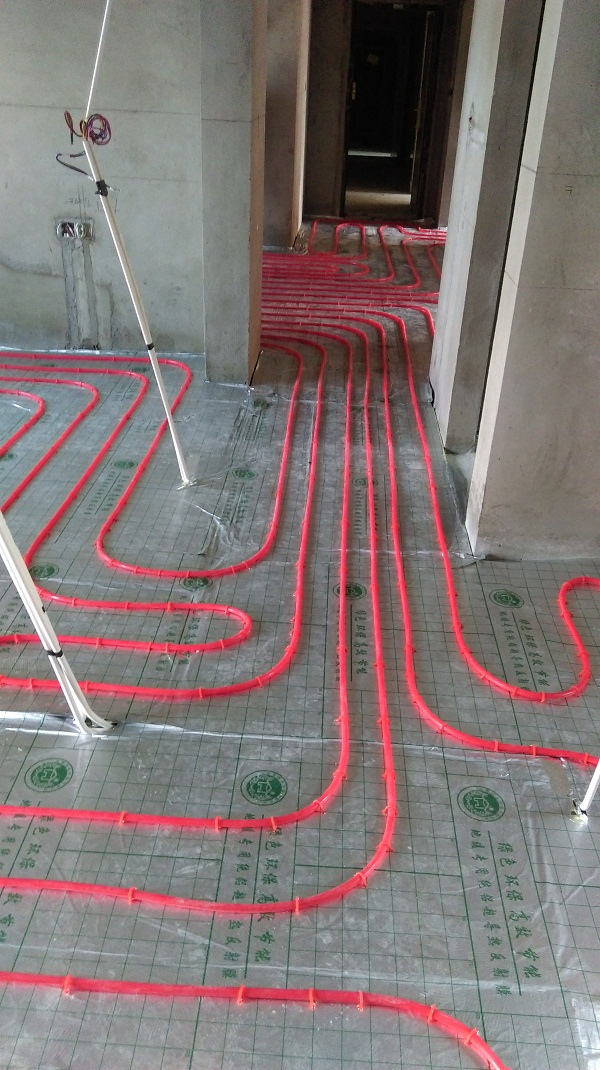 3、地暖采暖设计参数:采暖供回水系统分别采用:主水管DN20、次水管DN16; 管道平铺于保温挤塑板与铝箔反射膜上,以环保卡钉固定,完工后管系加压0.8mpa(不低于0.2mpa)