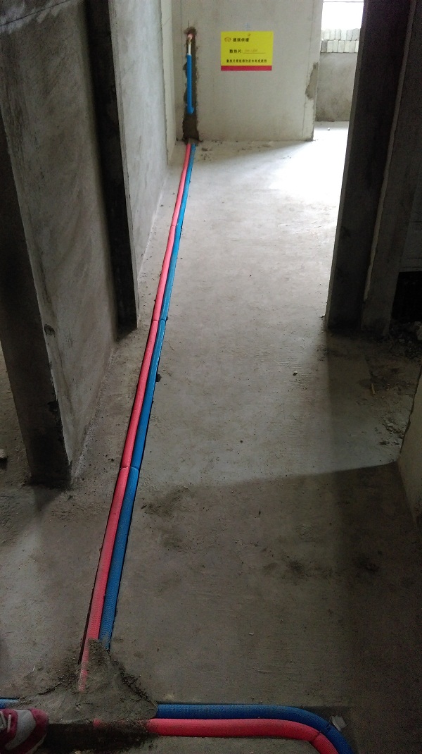 3、散热器采暖设计参数:采暖供回水系统分别采用:主水管DN20、次水管DN16; 管道开槽,外层做有保温层,完工后管系加压0.8mpa(不低于0.2mpa)