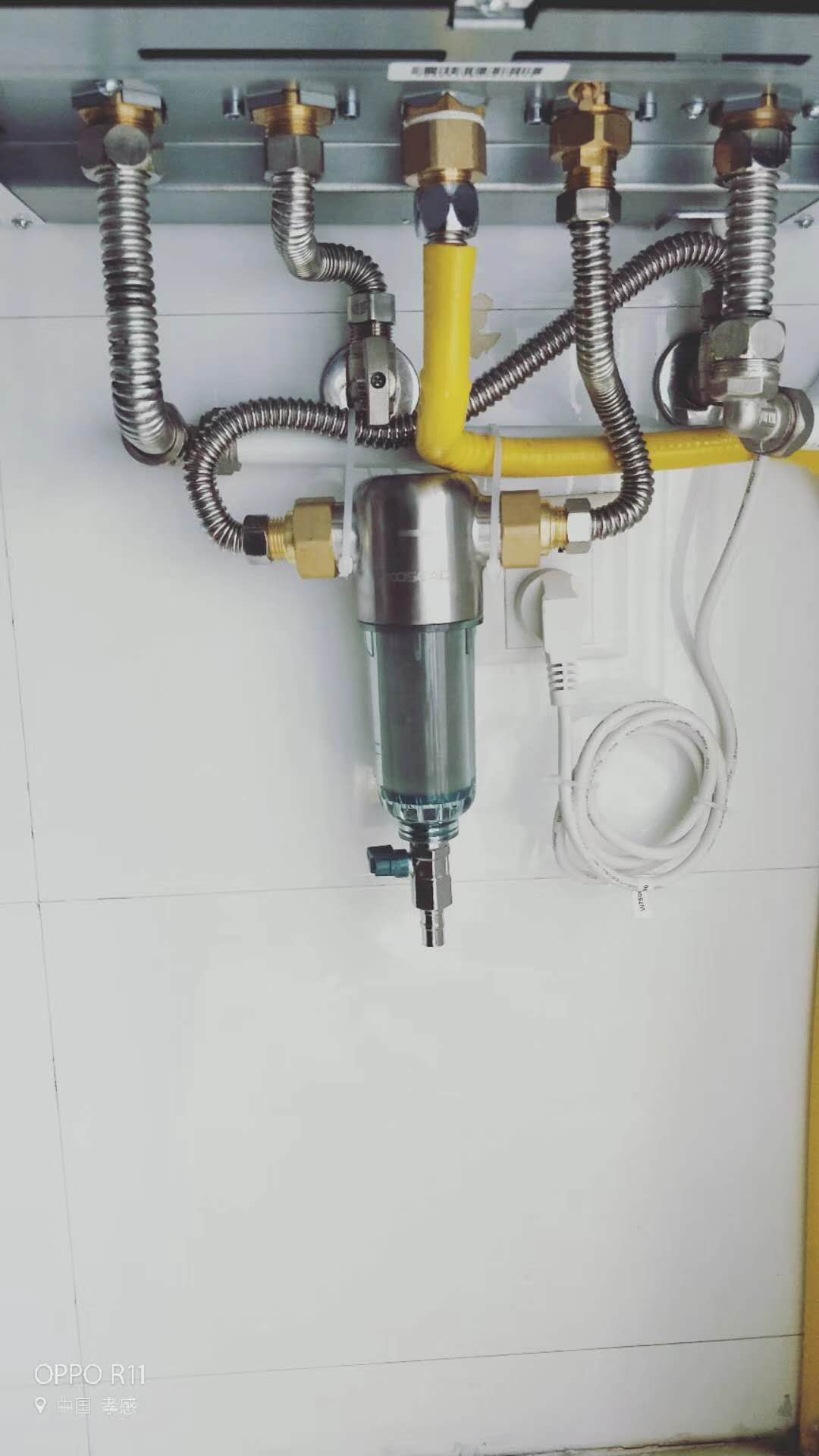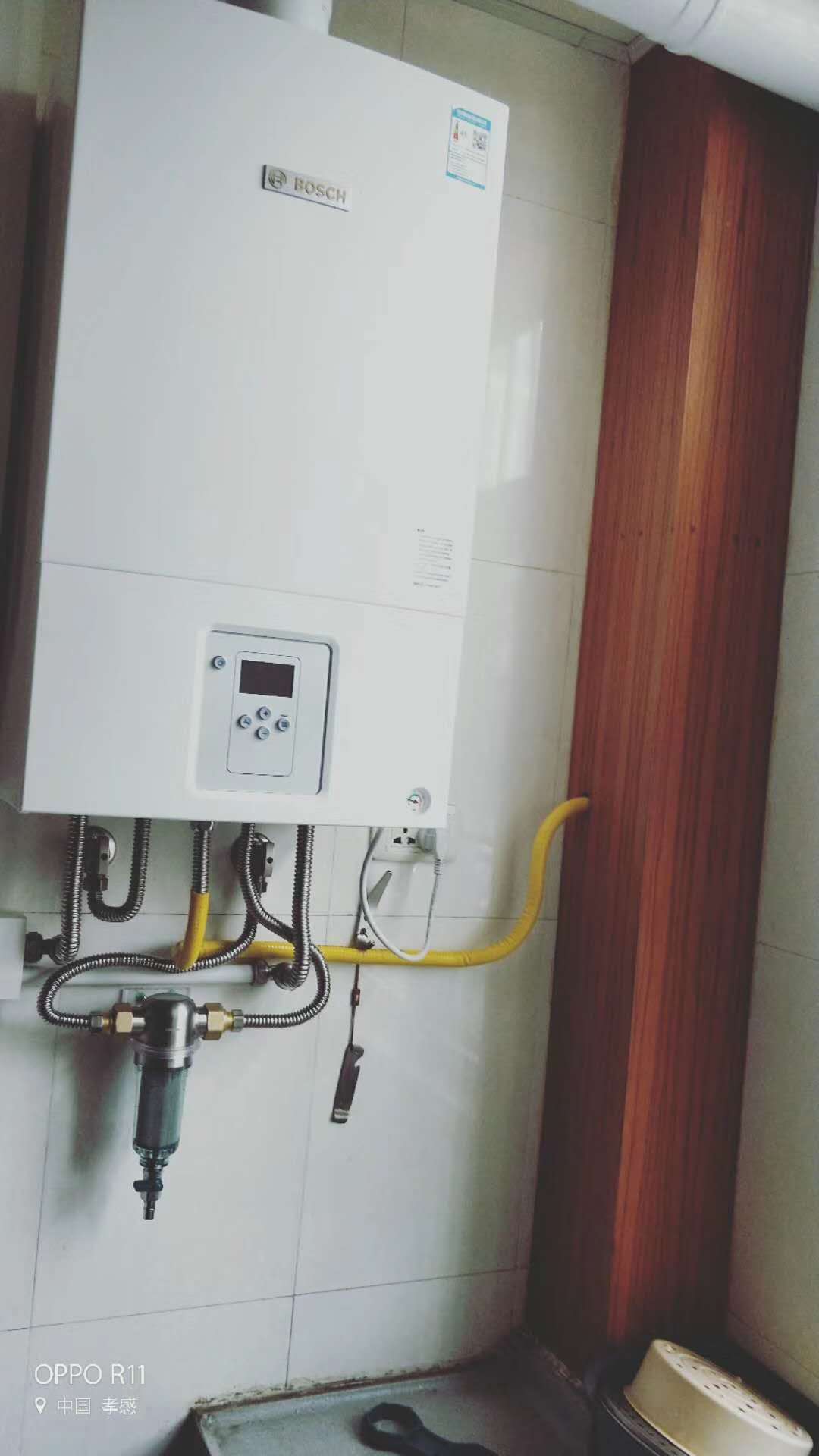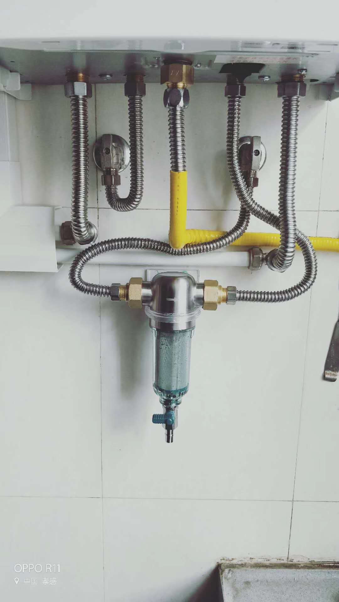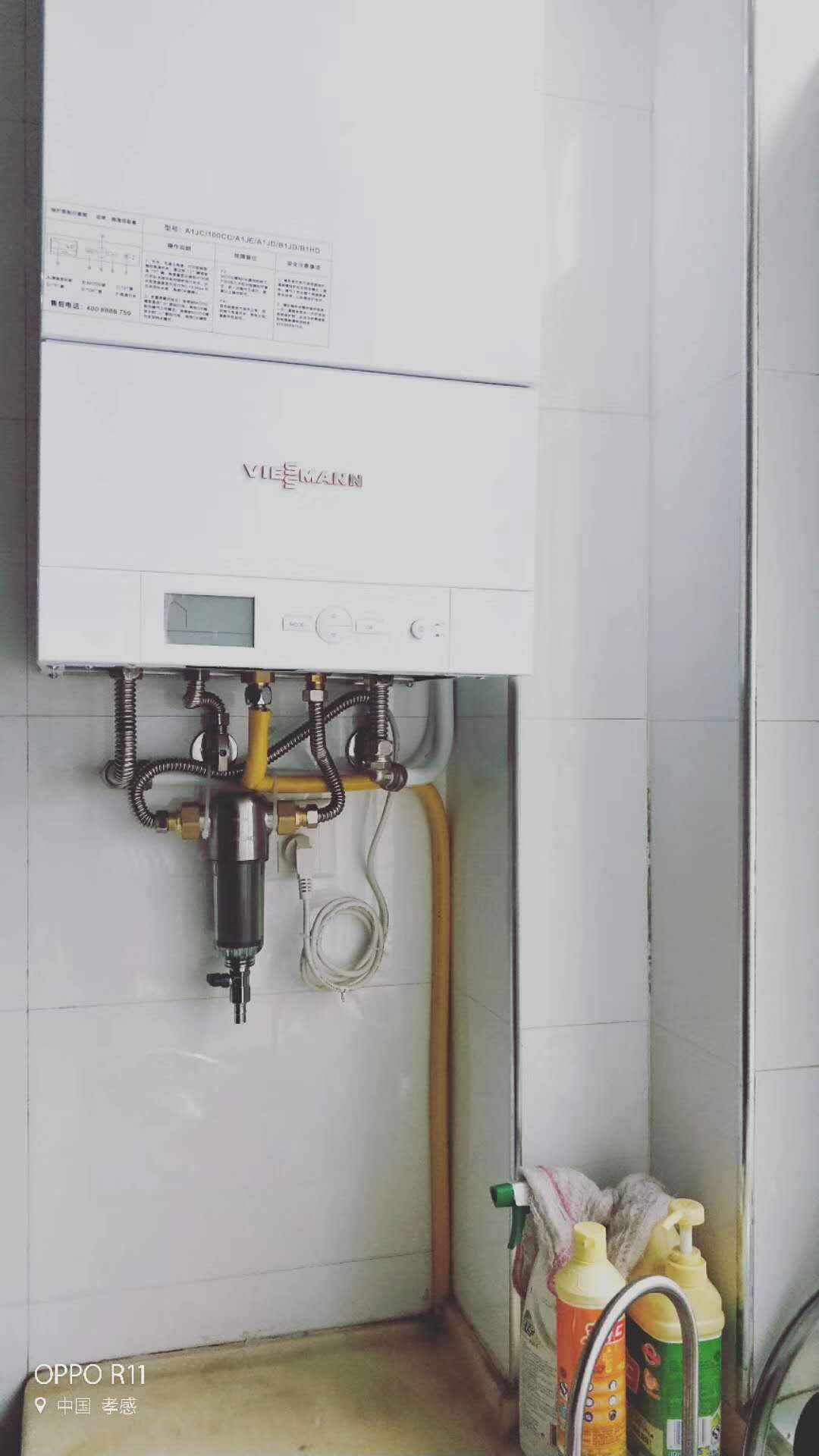 体育馆奥林新城7栋朱先生,8栋刘女士,明装暖气——壁挂炉进水管安装前置过滤器,非常有必要,保护壁挂炉,保护管道,散热片,最大程度减少暖气系统故障。