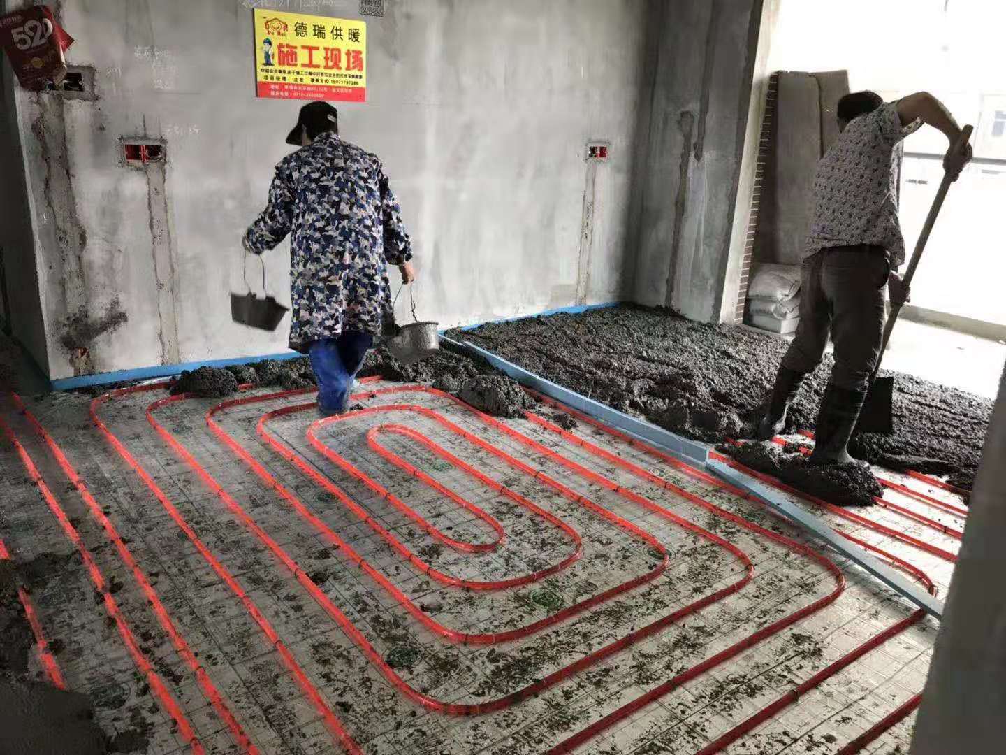 凤凰天仙城:客厅地暖+卧房暖气片一一混装暖气系统前期铺设完工,师傅正在有条不紊地进行地面找平环节。感谢孝感鼎宏装饰工程公司刘总对德瑞供暖一如既往的认可和选择