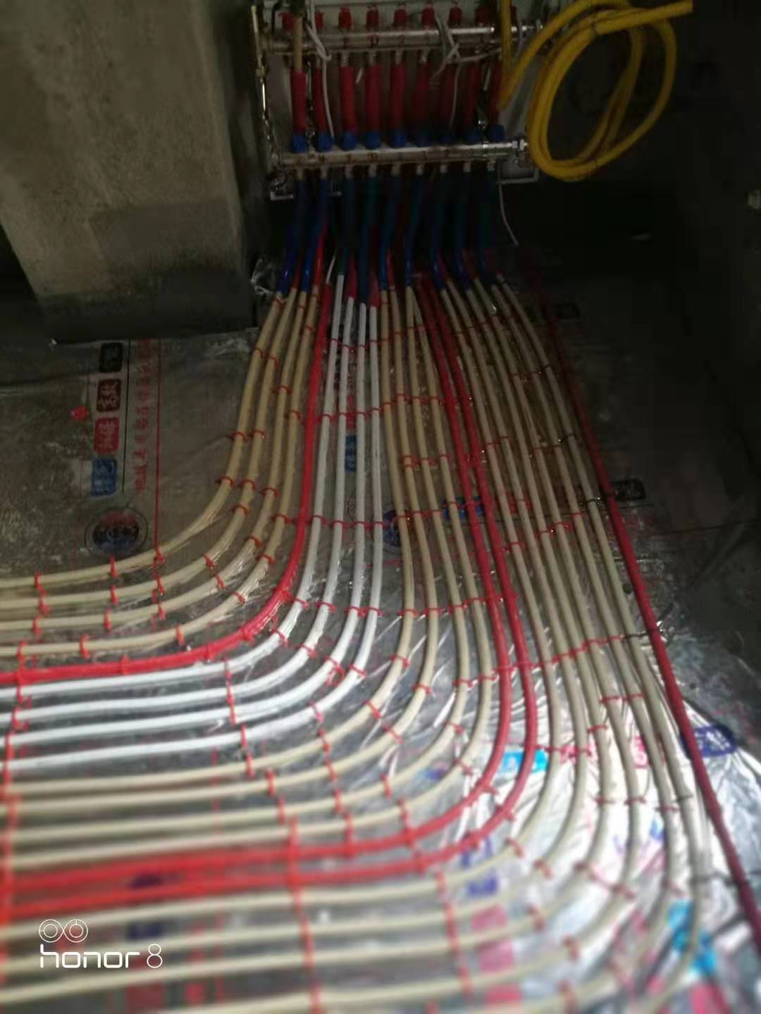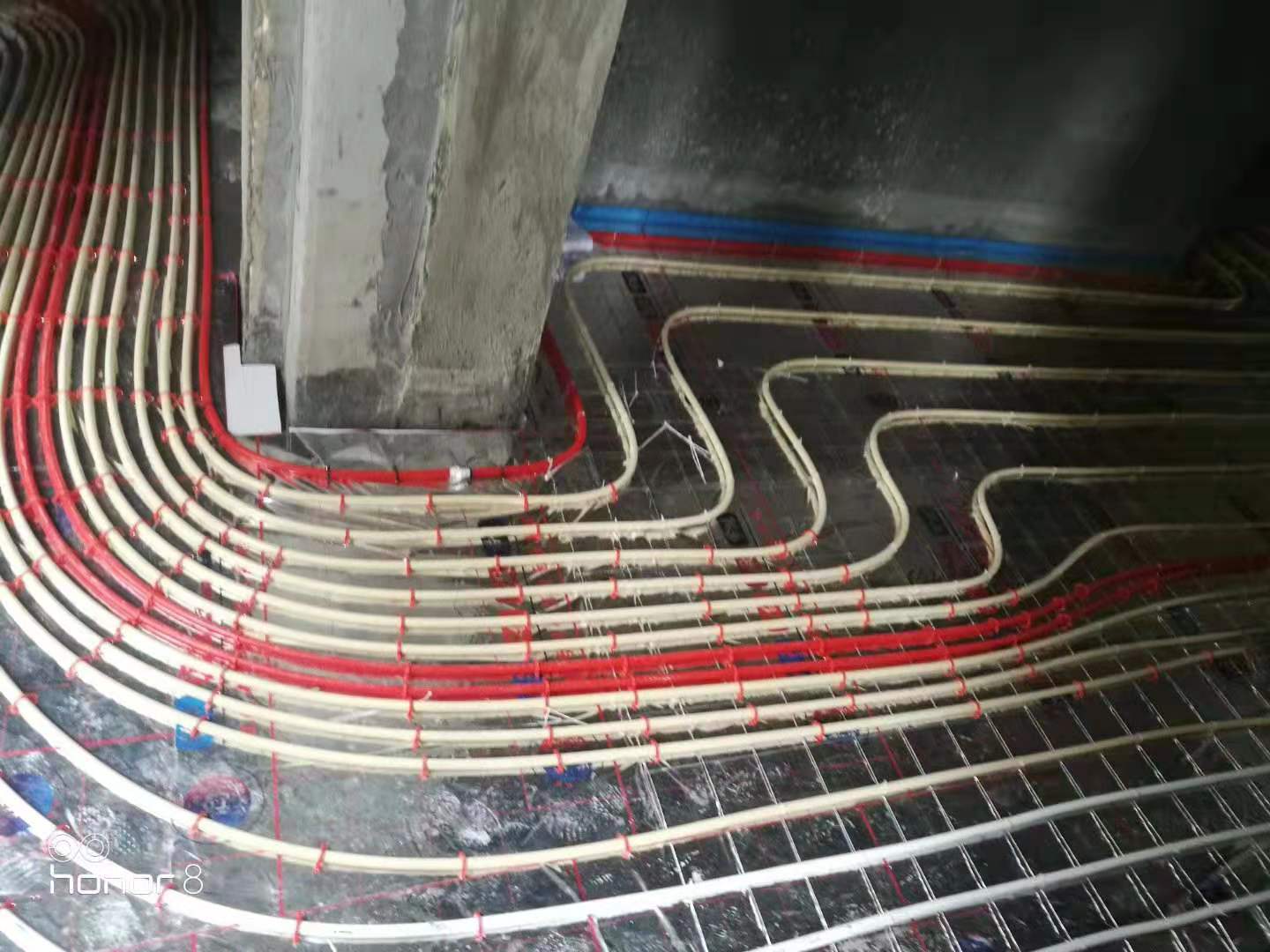 鼎观世界一期洋房:全房智能地暖+卫生间背篓1期施工完毕,采用瑞士+GF+乔治.费歇尔PE一RT地暖管十德国 曼派铝塑复合管,能有效保证安全使用五十年以上。同时感谢红星金街一马装饰设计公司一如既往的大力支持