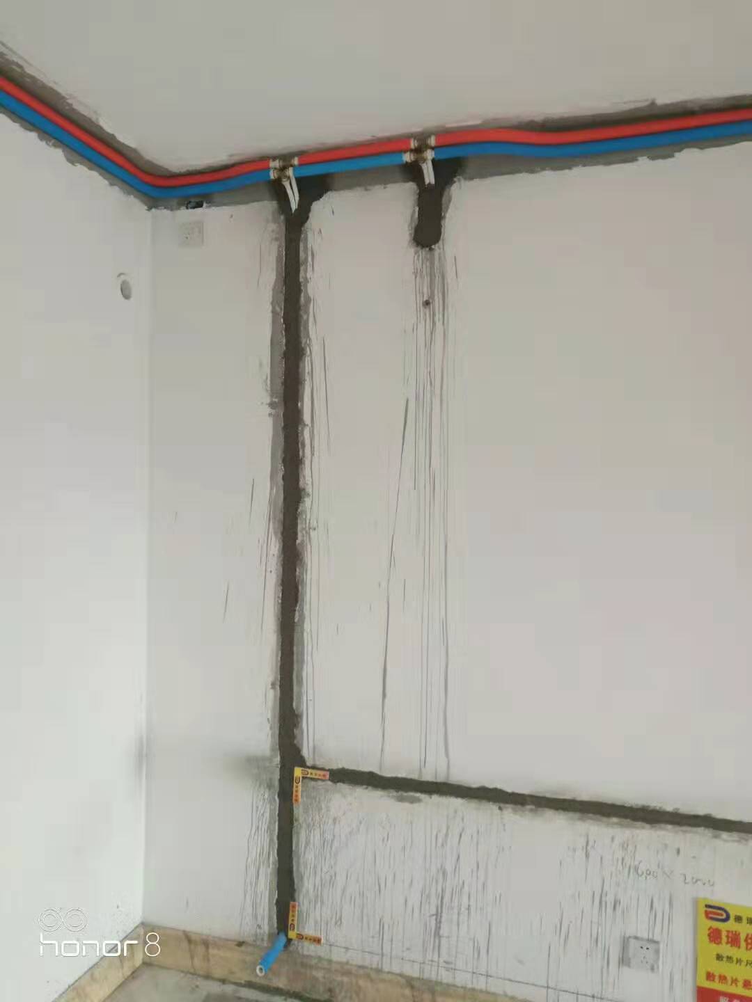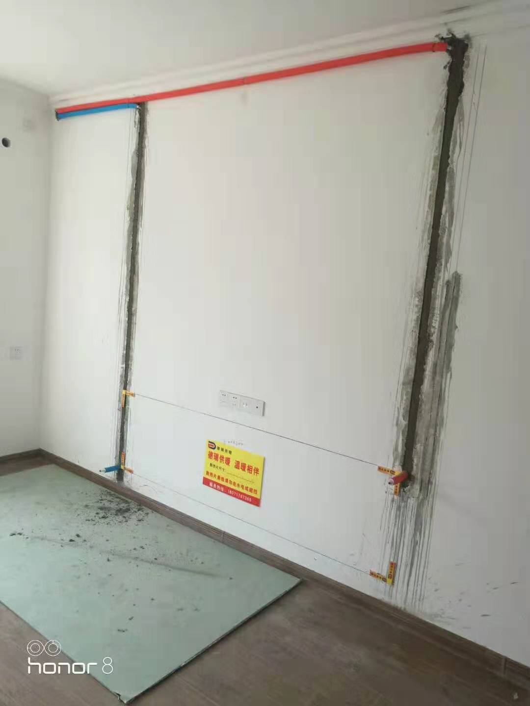 孝感碧桂园·城市之光19栋,暖气施工从吊顶下来,墙上开槽暗埋,非常漂亮!