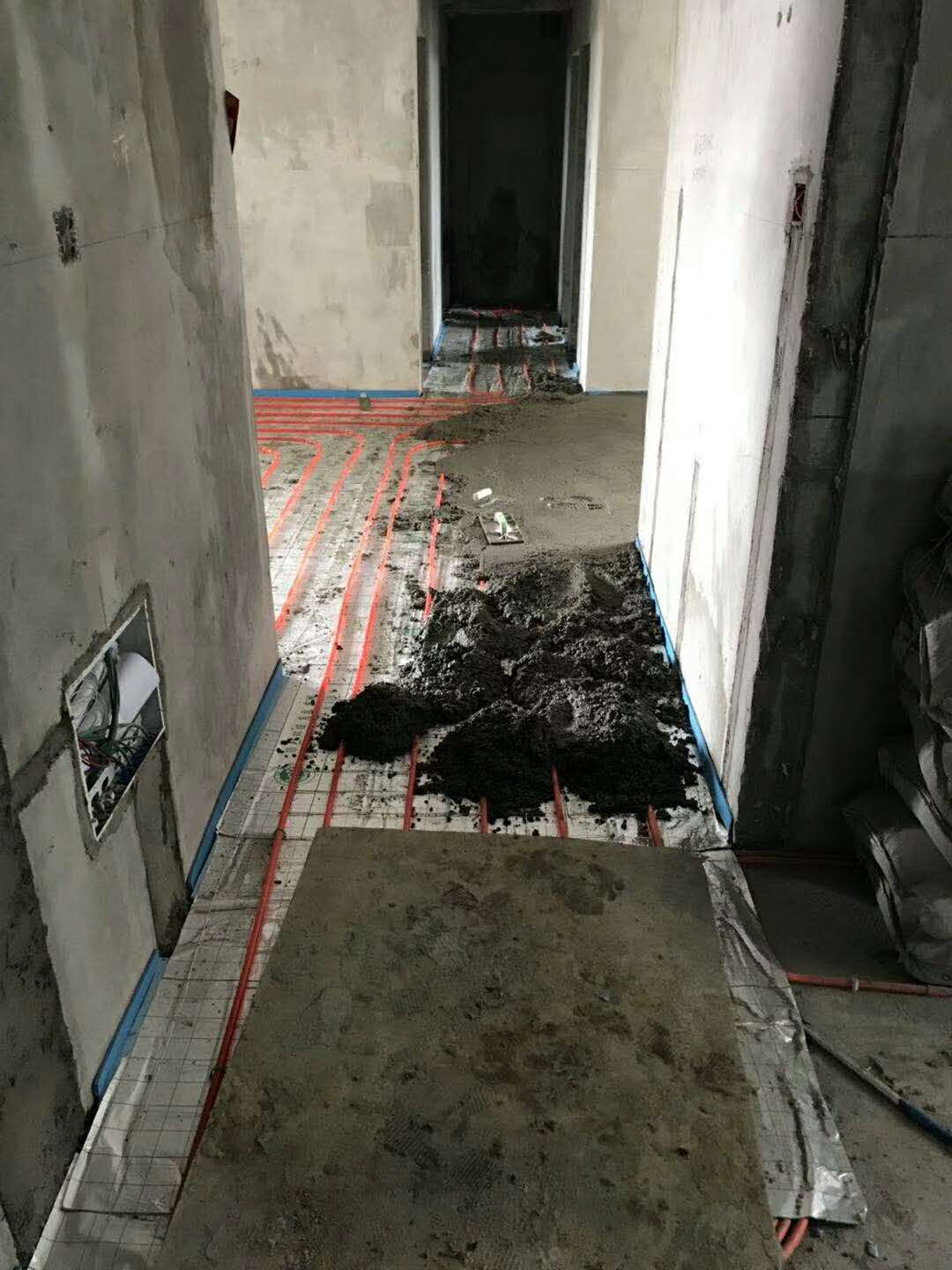 凤凰天仙城:客厅地暖+卧房暖气片一一混装暖气系统前期铺设完工,师傅正在有条不紊地进行地面找平环节。感谢孝感鼎宏装饰工程公司刘总对德瑞供暖一如既往的认可和选择