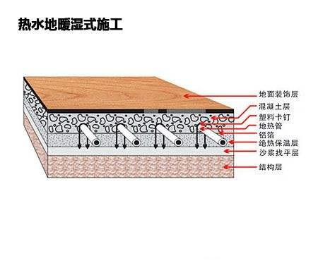 地暖为低温水采暖,工作温度为40-60℃,工作压力为0.4MP内,在正常使用,无外力破坏的情况下,合格的地暖管道可以保证使用50年以上。钢制板式的暖气片的使用寿命依水质情况而定,一般为10-20年。铜铝复合暖气片一般可达20年以上,但初期安装费用较高。